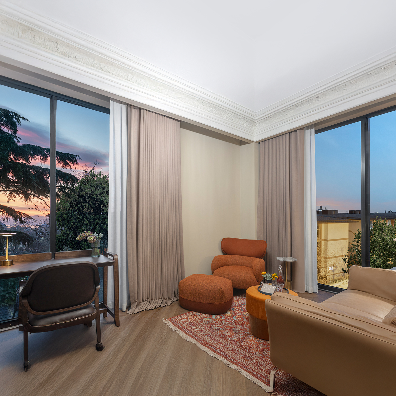 The chinar suite is gifted with one of the most characteristic features of traditional Turkish houses; ‘cumba’, a projecting window from the upper storeys. This feature gives The Chinar suite a unique relationship with a marvelous view.