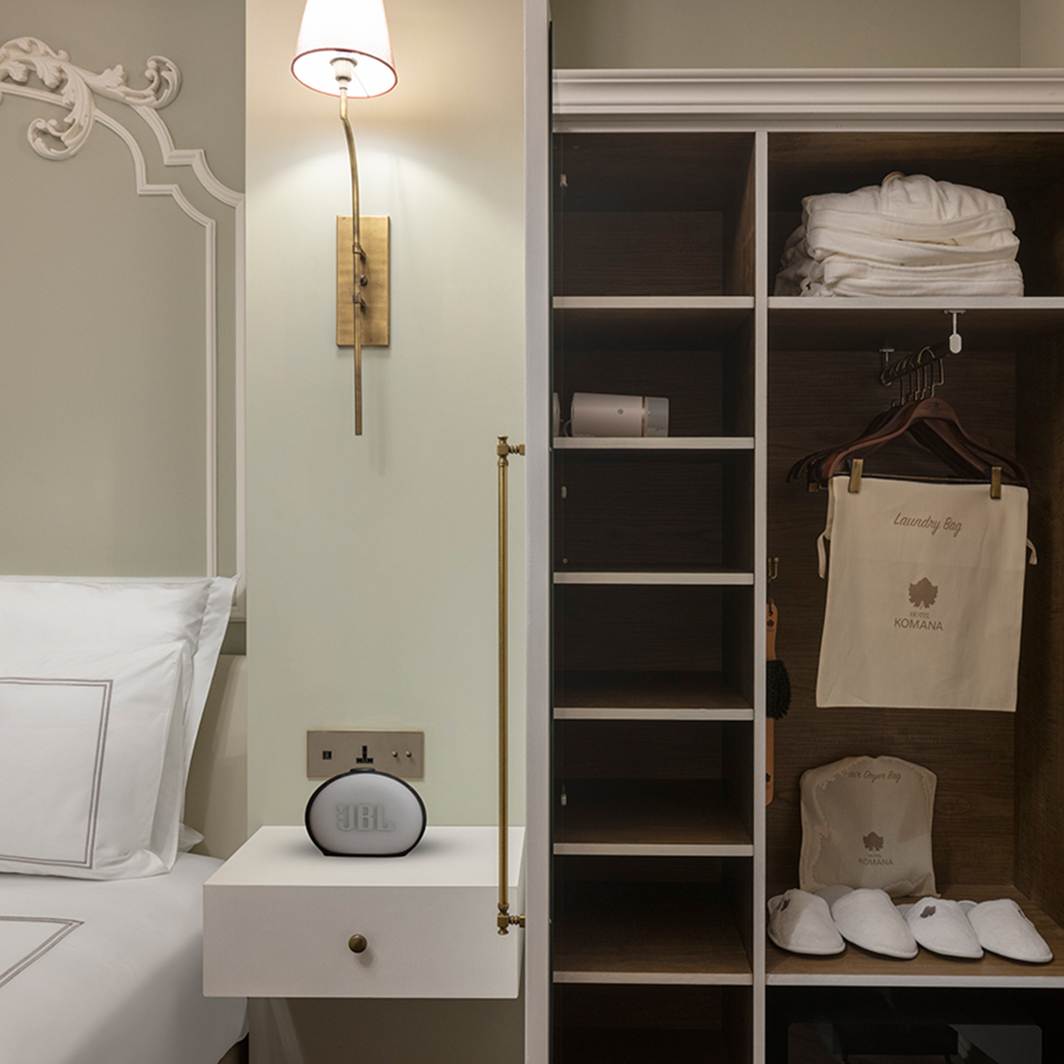 Signature Bathrobes and Slippers – Set towels, hair dryer, make up mirror
